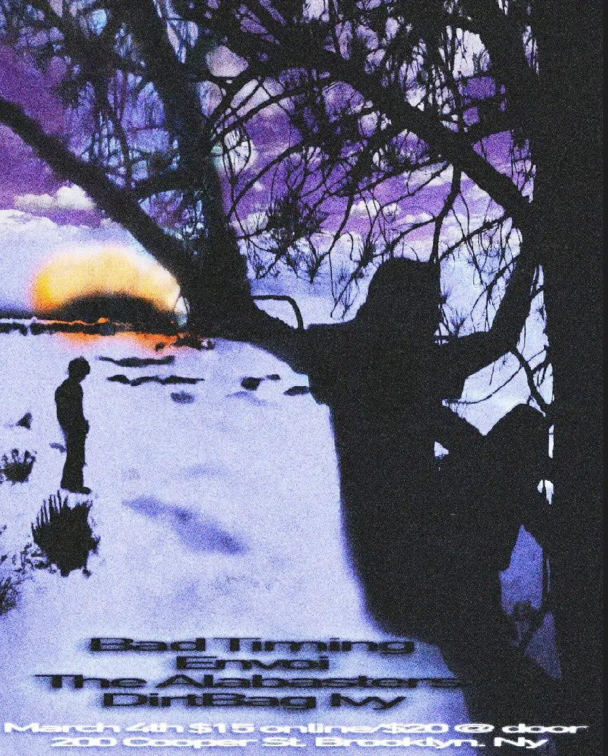 Unruly collective Dec 11 Written By DirtbagIvy . March 4th, 2026 - 7pm, $15, +21unruly collective - 200 Cooper St, Brooklyn, NY 11207<BANDSINTOWN & SONGKICK>BAD TIMINGinstagram - bandcamp - facebookTHe Alabastersinstagram ENVOIinstagram dirtbag ivyunruly collectivebushwickbad timingenvoithe alabasters DirtbagIvy .
